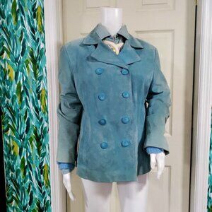 Title: J. Marco Suede Artsey Rugged Double Breasted Blazer Jacket Blue Women's Size L