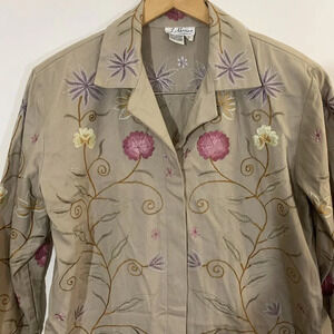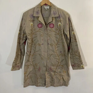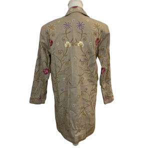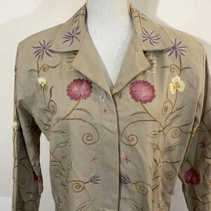 J. Marco Womens Shirt Dress Tan Embroidered Pink Flowers Small Collared.