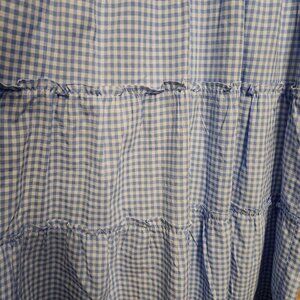 J Marie Blue Gingham Cotton Floral Embroidered Dress Size S