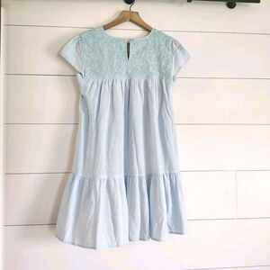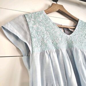 J. Marie Blue Green Embroidered Shift Dress Tiered Boho Peasant Cottage Flowy XS