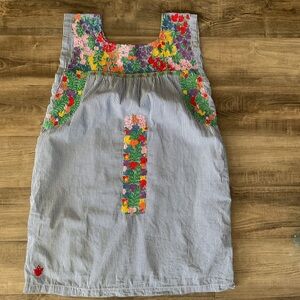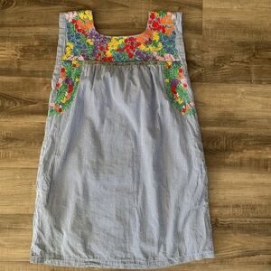 J. Marie Blue White Striped Floral Embroidery Ana Maria Shift Dress Sz S