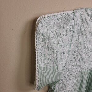 J. Marie Embroidered Tiered Ruffle Green Striped Dress