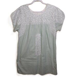 J. Marie Embroidered Tiered Ruffle Green Striped Dress L Party Event Wedding