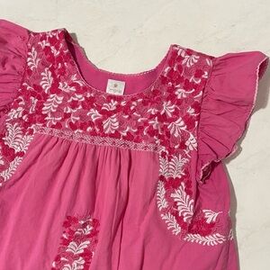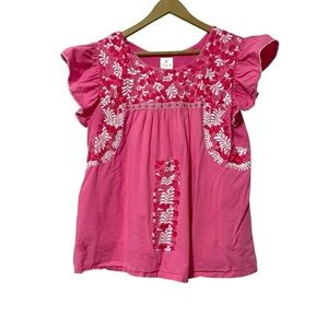 J. Marie Hot Pink Ruffle Sleeve Embroidered Cam Top Size Large Preppy Boho