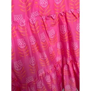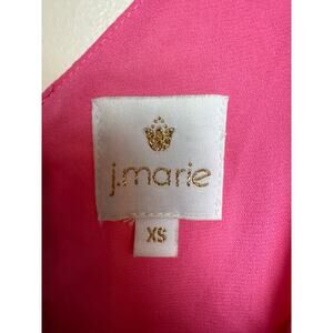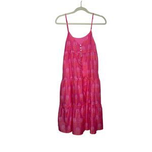 Pink tulip floral print dress from J. Marie. Pulls on. Sleeveless. V back. Low neck. Hits below the knee. Adjustable straps. Button details down the upper back. Side pockets. Lined. Polyester. Dry clean only.