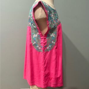 This J. Marie Pink Embroidered Linen Hannah Top is in excellent condition.