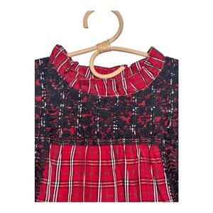 J. Marie Red Tartan Rayna Plaid Ruffle Neck Embroidery Top NEW Size M Holidays
