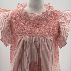 J. Marie The Schafer Ruffle Neck Embroidered Striped Dress - NWOT - Size Small