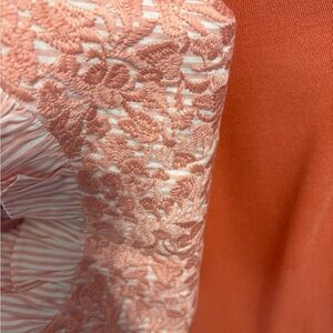 Approximate measurements: 18" pit to pit, 34" length. Last picture is added to show the contrast between coral and the pink of the dress.