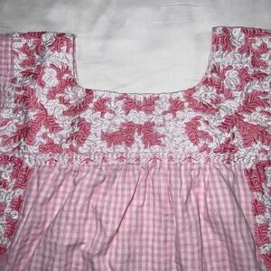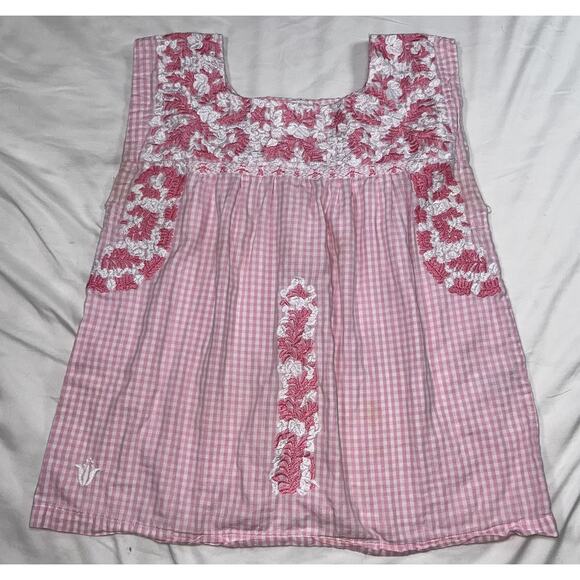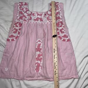 J. Marie Top Womens Size S Pink Gingham Floral Embroidered Sleeveless Tank READ