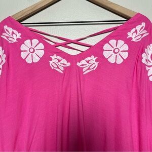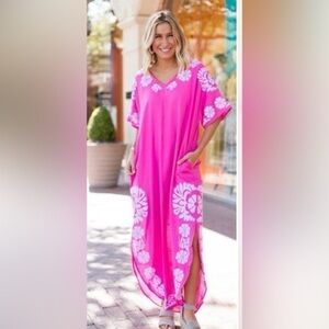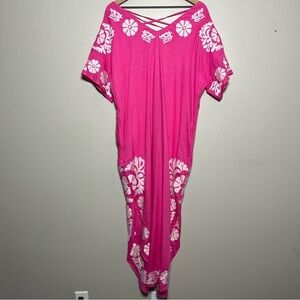 J. Marie Women Dress Small Pink White Luna Embroidered Maxi Pockets Oversize