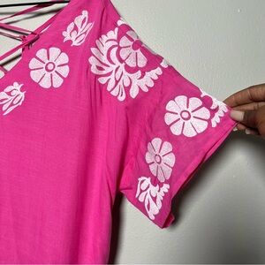 J. Marie Women Dress Small Pink White Luna Embroidered Maxi Pockets Oversize Shirt