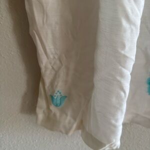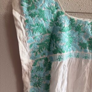 J Marie embroidered Rayon Linen mix top M Blue Green Blue