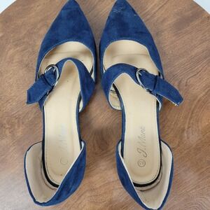 J Mark Womens Sandals 8.5 Blue Suede Pointed Toe Buckle Strap D'Orsay Flats
