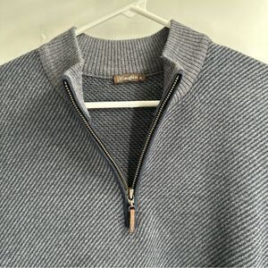 J McGlaughlin Size XL 100% Merino Wool Gray 1/4 Zip Ribbed Pullover Sweater.