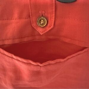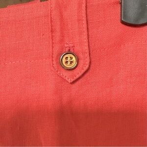J McLAUGHLIN 6 FLARE LEG WOMENS LINEN CORAL LINED PREPPY DRESSY CAREER PANTS. Hook and Zipper Closure. Functioning Back Pocket. 100% Linen. Inside of Pant Leg with White Embroidery. Size 6