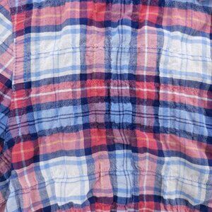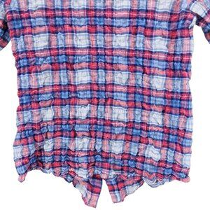 J. McLAUGHLIN Crinkle Shirt Red Blue White Plaid Cotton Spandex Size SMALL