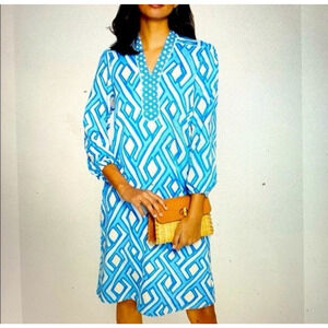 J. McLaughin Dress Ember Vilhada Geo Print Small Blue Catalina Cloth pockets