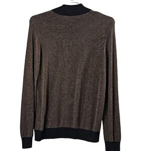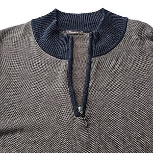 J. McLaughin Mens Sz L Brown And Gray 1/4 Zip Ribbed Collar and Cuffs Sweater