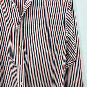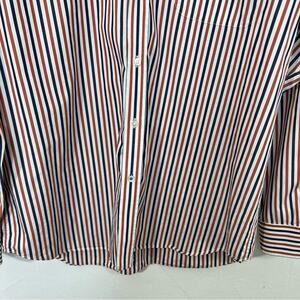 J. McLaughin Orange Navy Stripe Flip Cuff Button Up Shirt Size L