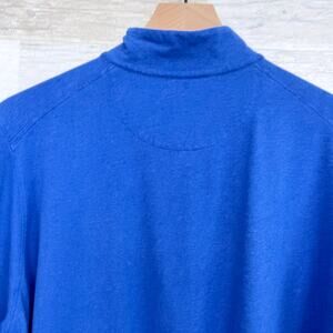 J McLaughlin 1/4 Zip Mock Neck Sweater Blue Cotton Casual Stretch Mens XL