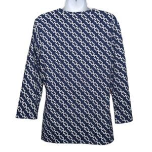 J McLaughlin 3/4 Sleeve Signature Tee Women's Size L Navy White Link Print Catalina Cloth NEW NWT msrp $178
