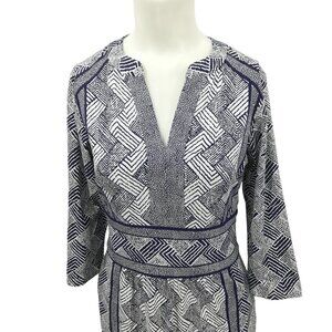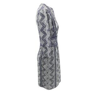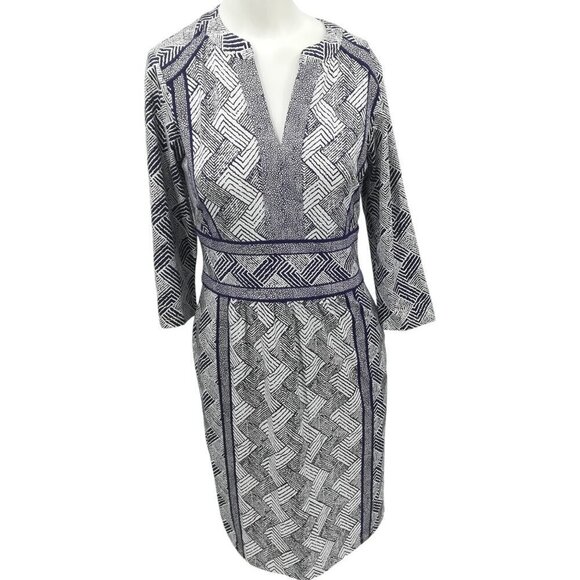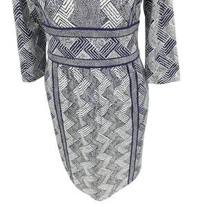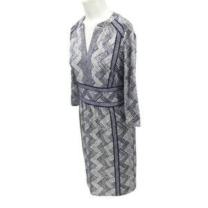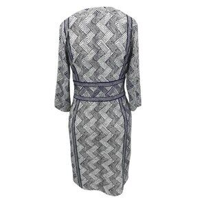 J McLaughlin 3/4 Sleeve V-neck Sheath Dress Size XS Geometric Chevron Catalina