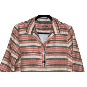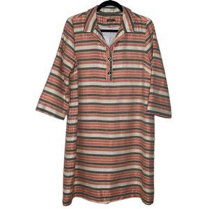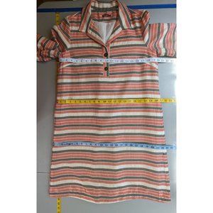 J. McLaughlin 3/4" sleeves collared neck orange red, black Striped Dress size M