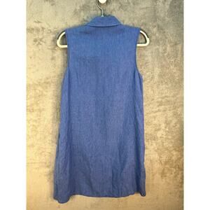 J McLaughlin Aberdeen Linen Dress Small Blue Beachy Coastal Quiet Luxury Flaw. There is a faint stain under the left pocket and two stain on the bottom right of the dress.