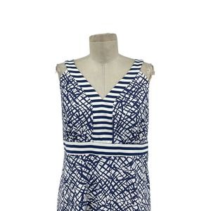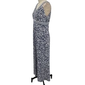 J. McLaughlin Abstract Striped Maxi Dress Navy Blue White Size Large