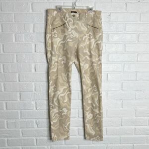 J McLaughlin Baxter Tan Camo Mid Rise Slim Fit Moto Jeans Zipper size 8