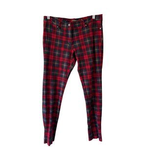 J. McLaughlin Becca Leggings Regiment Plaid Size 8 Red & Black Stretch Womens