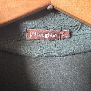 J McLaughlin Bedford green, textured long sleeve dress, zip neck, collar closure, stretch, size large, 75% nylon 16% polyester 9% elastane