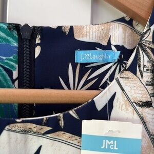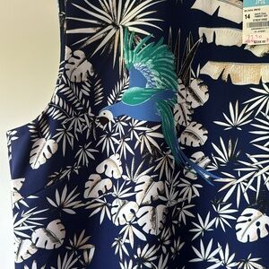 J McLaughlin Belinda Parrot Kay Navy and Teal Sheath Dress NWT Size 14