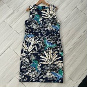 J McLaughlin Belinda Parrot Kay Navy and Teal Sheath Dress NWT Size 14