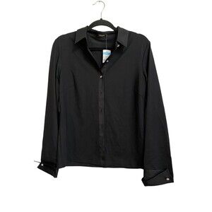 J McLaughlin Betty BD Blouse Size L NWT Black Button Front Silk Placket
