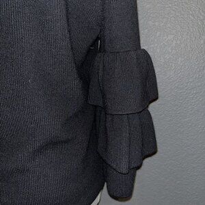 J. McLaughlin Black Italian Merino Wool Ruffle Sleeve Sweater Size S EUC