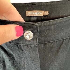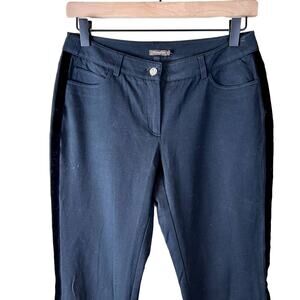 J. McLaughlin Black Tuxedo Stripe Dress Pants Gemstone Button Sz 2