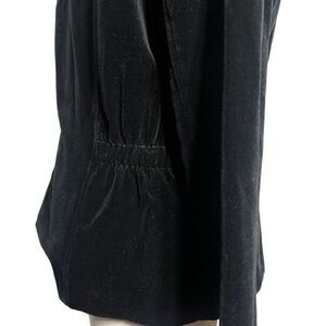 Features fold down collar, hidden front zipper, front zippered pockets and front deep pockets, ruched at the waist, and is a super soft velvet. Laying flat measures 20" from pit to pit, 25" shoulder to the hem, and sleeves are 24". Be sure to check out all of my other jackets and blazers listed.