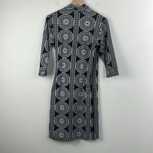 J. McLaughlin Black White Geo Print Faux Wrap Catalina Cloth Dress XS Career