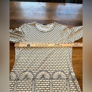 J. McLaughlin Black and Cream Patterned Top Size Medium