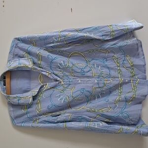 J. McLaughlin Blue Equestrian Long Sleeve Button-Down Shirt Size 10