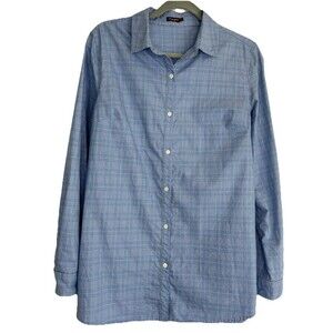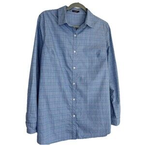 J McLaughlin Blue Gingham Plaid 100% Cotton Button Down Shirt Womens Size L