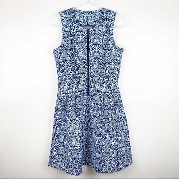 J. McLaughlin Blue Patterned Scuba Zip Front A-Line Active Dress