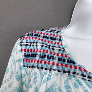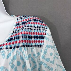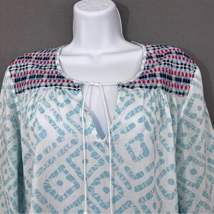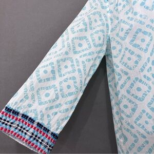 J. McLaughlin Blue Print Embroidered Tie Neck Tunic Top