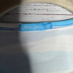 This J. McLaughlin blue striped crew neck shirt is a classic and comfortable addition to your wardrobe! The XS size is perfect for a slim fit. Grab it now to add a touch of nautical charm to your everyday look! Don't miss out!