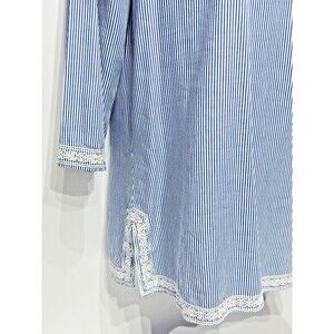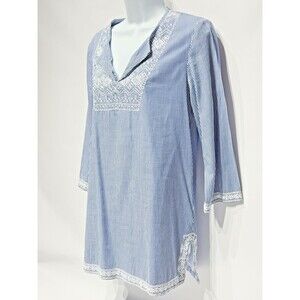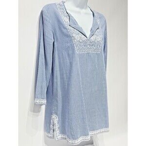 J. McLaughlin Blue Striped Lace Trim Blouse Tunic 3/4 Sleeve Women's Size S (A1)