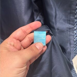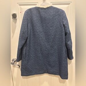 J. McLaughlin Blue Tweed Long Line Car Coat Metallic Thread Fringe
