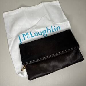 J. McLaughlin Brown Calf Hair Fold Over Clutch Bag
