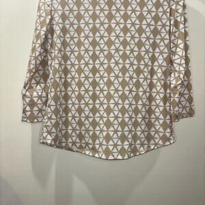 J.McLaughlin Brynn Button Down 3/4 Sleeve Top – Tan & White Geometric Print – Size XS